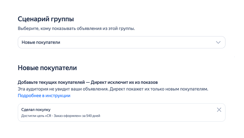 Для бизнеса это означает: можно спокойно разделить кампании по новым и по старым клиентам, не создавая десятки корректировок и не теряя контроль над бюджетом.